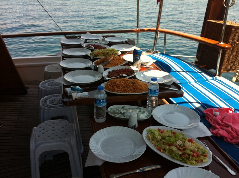 Keyifli bir öğle yemeğinden sonra, serinlemek için meyve servisiyle devam ediyoruz. Turun sonlarına doğru akşam çayı ve kek ikramımızın ardından saat 17:30’da limana dönüş yapıyoruz.
