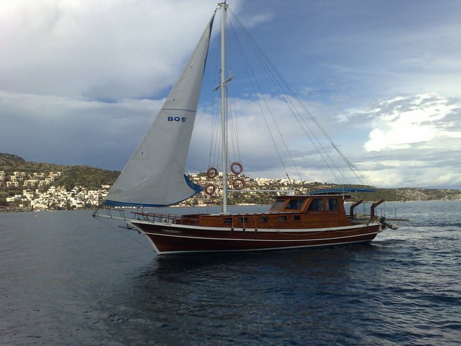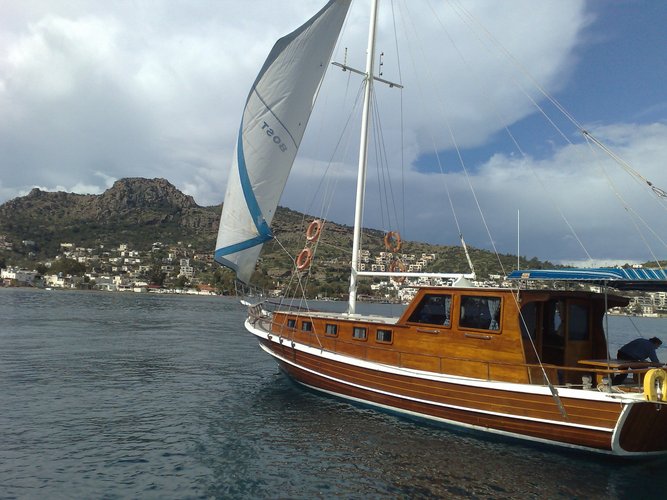 Egeli Günlük ve Haftalık Tur Teknemiz, 2004 yapımı Bodrum Gulet tipi, tamamen ahşap, zarif bir yelkenlidir.