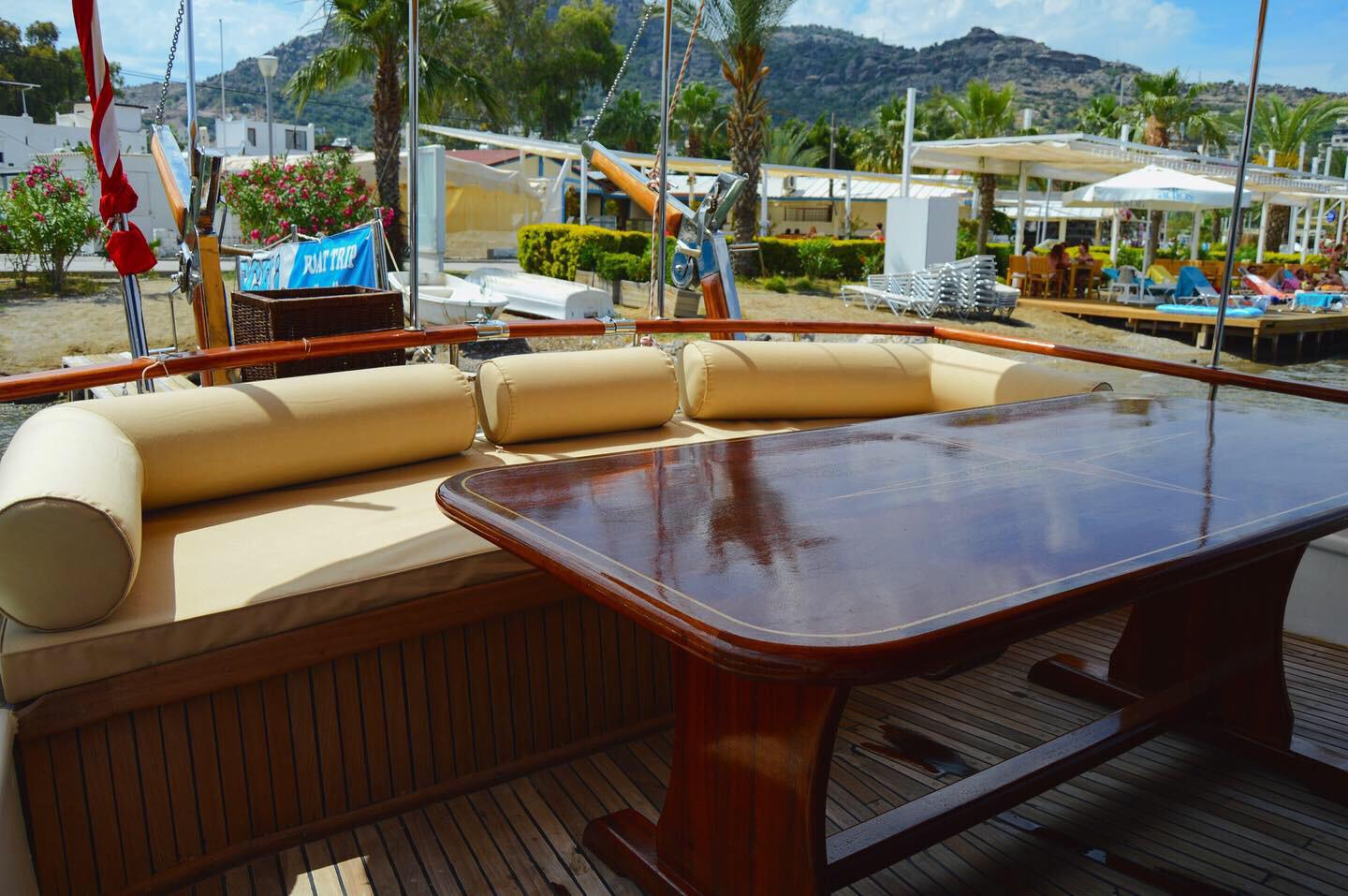 Egeli Günlük ve Haftalık Tur Teknemiz, 2004 yapımı Bodrum Gulet tipi, tamamen ahşap, zarif bir yelkenlidir.