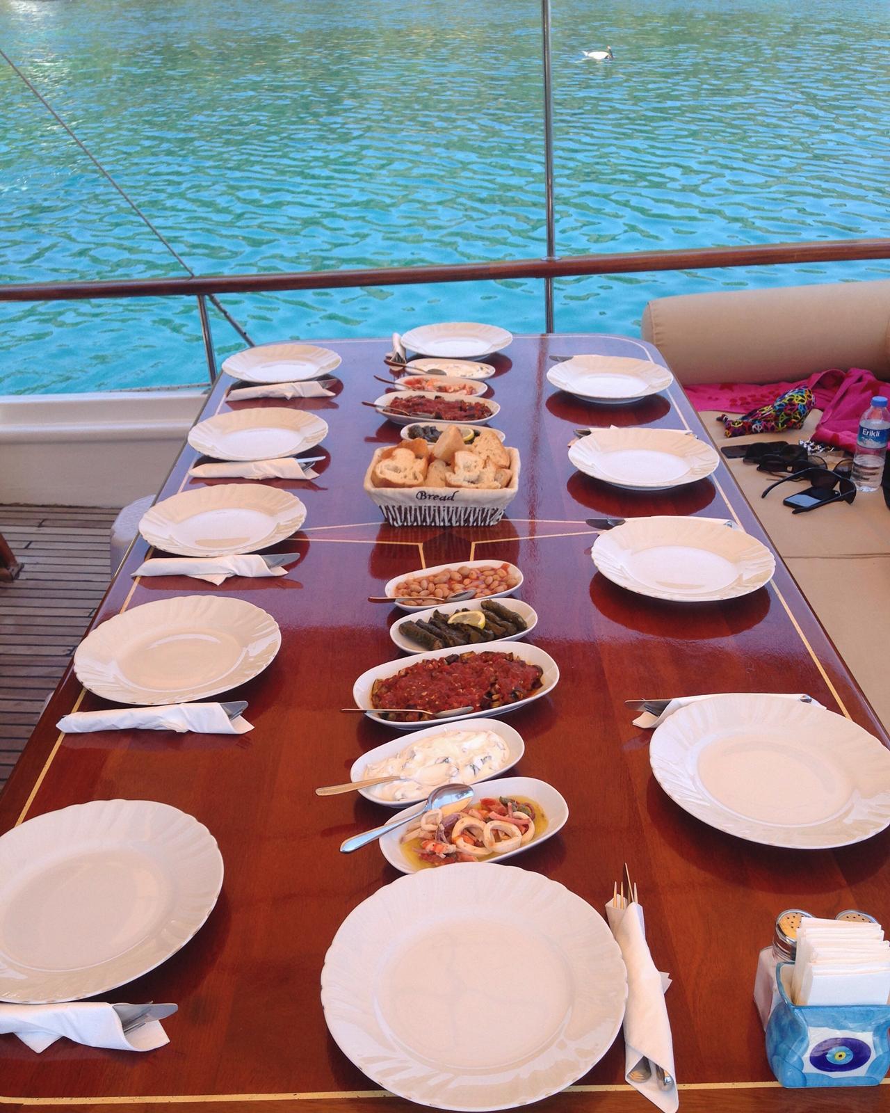 Keyifli bir öğle yemeğinden sonra, serinlemek için meyve servisiyle devam ediyoruz. Turun sonlarına doğru akşam çayı ve kek ikramımızın ardından saat 17:30’da limana dönüş yapıyoruz.
